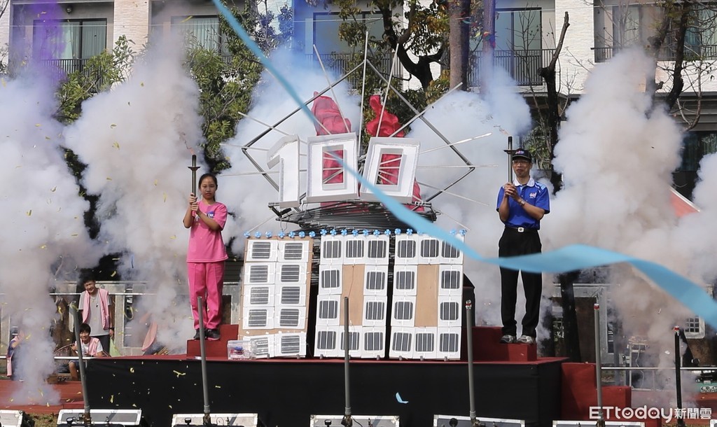 ▲台南長興國小運動會點亮自製水管聖火台、彩炮齊響。(圖/陳主任提供,下同。)