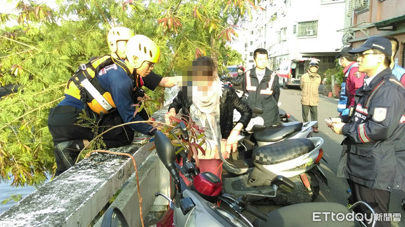 ▲特搜人員將女子搶救上岸。(圖/記者林悅翻攝)