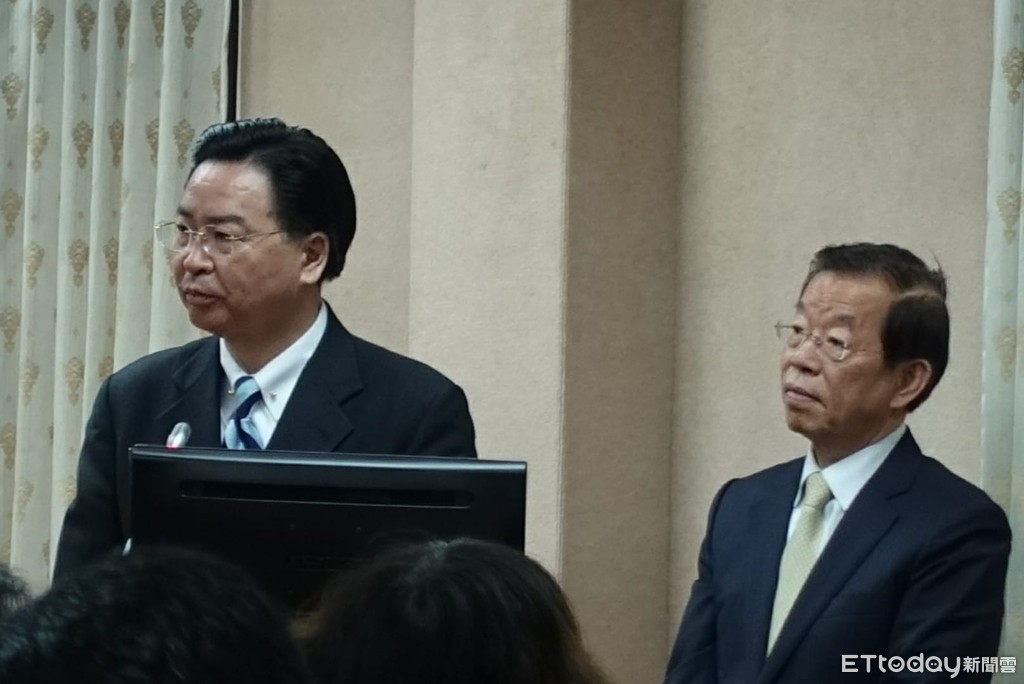 ▲外交部長吳釗燮及駐日代表謝長廷。(圖/記者翁嫆琄攝)
