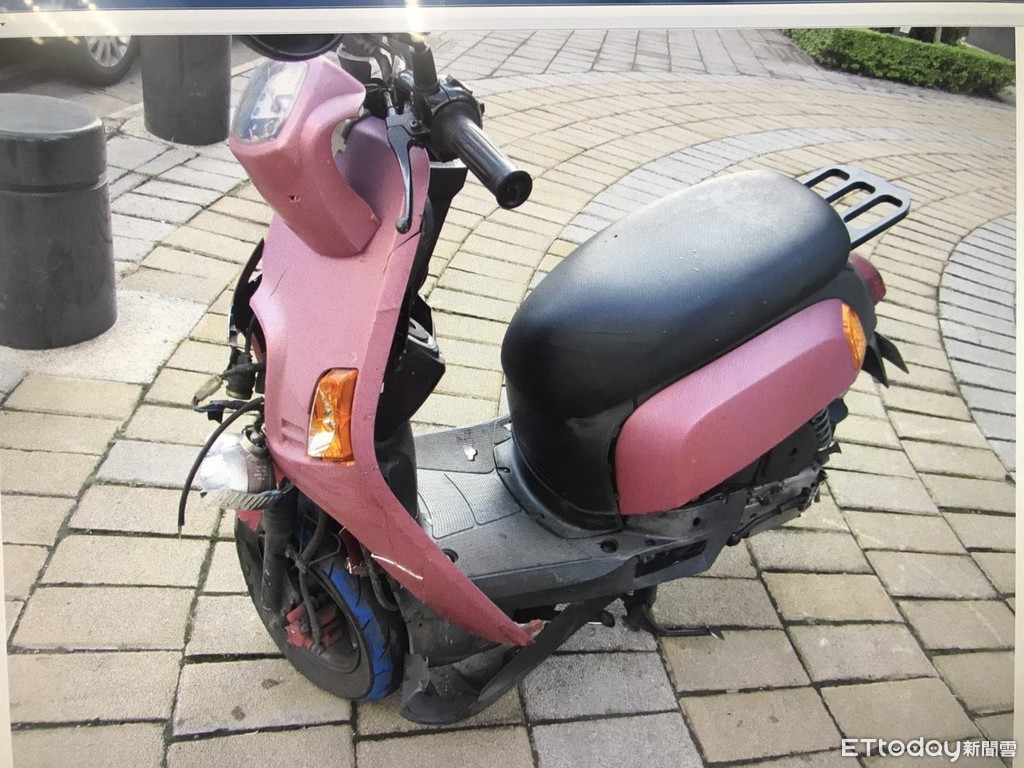 ▼陳姓女子騎乘的摩拖車車頭嚴重毀損。(圖/記者陳豐德翻攝)