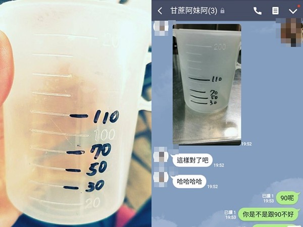 不要霸凌90!一名女網友表示,店裡的妹妹很貼心的幫她清洗所有餐具,還把量杯空著的刻度全部補上數字,但她看完刻度上的「等差」直接傻眼。