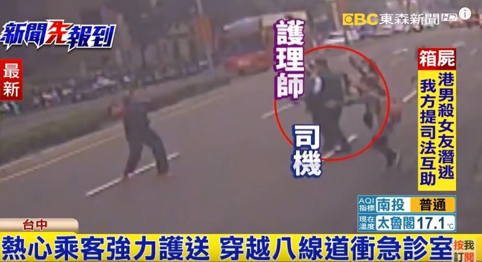 台中一名高一的女學生22日上午搭乘統聯客運73號公車時,突然感到身體不適昏倒,乘客發現後趕緊告訴司機,司機劉恒賓眼看醫院就在前方200公尺,迴轉來不及,就先將車停在站牌,抱起她跨越八線道的馬路,好心的幾名乘客還幫忙揮衣服示意來車,將人護送至急診,「救人要緊啊!」