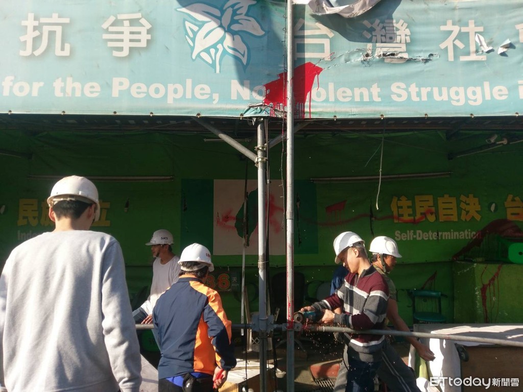 ▲台北市府拆除公投盟帳篷。(圖/記者賴于榛攝)