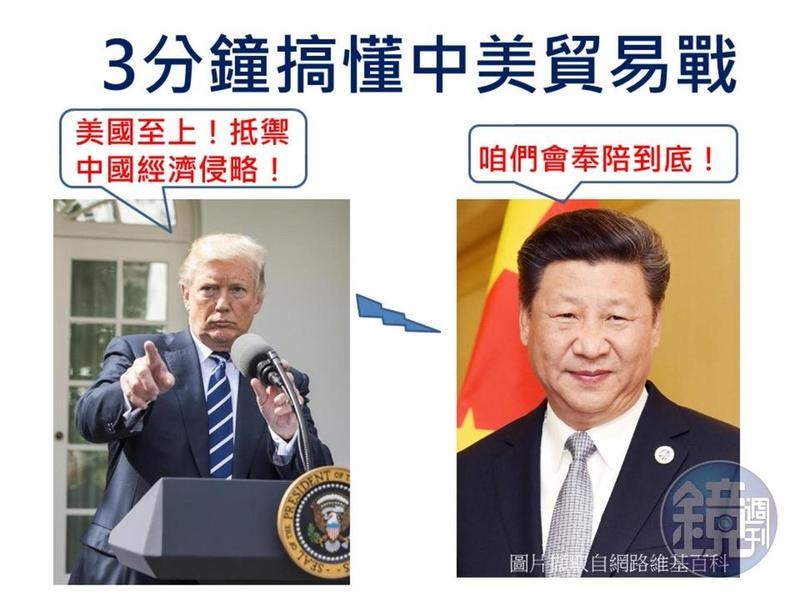 隨著中美貿易戰愈演愈烈,不少台灣民眾想問,中美貿易戰到底在打什麼?跟我有什麼關係?說起事件主因是,美國總統川普不滿長久以來與中國的貿易逆差,加上認為中國在智慧財權上有「侵略」行為,因此祭出3個反制手段,包括提高關稅、訴諸WTO及限制投資。