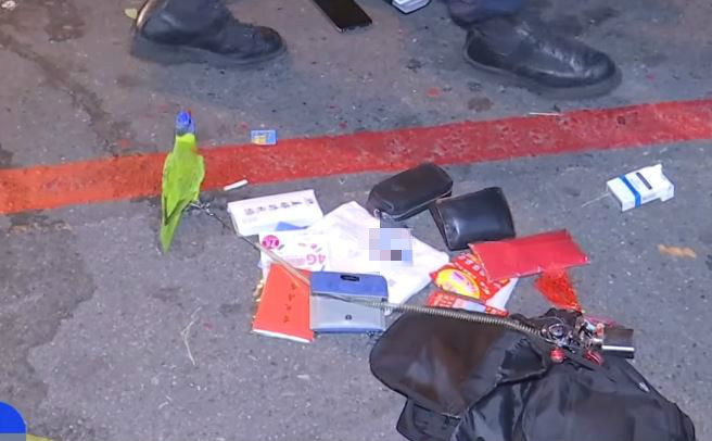 ▲高雄槍戰現場,洪嫌的鸚鵡「QQ」沒飛走。(圖/中天新聞,下同)