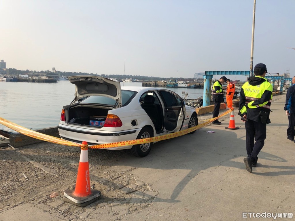 ▲白色轎車停港邊,車門都開啟。(圖/海巡署提供)