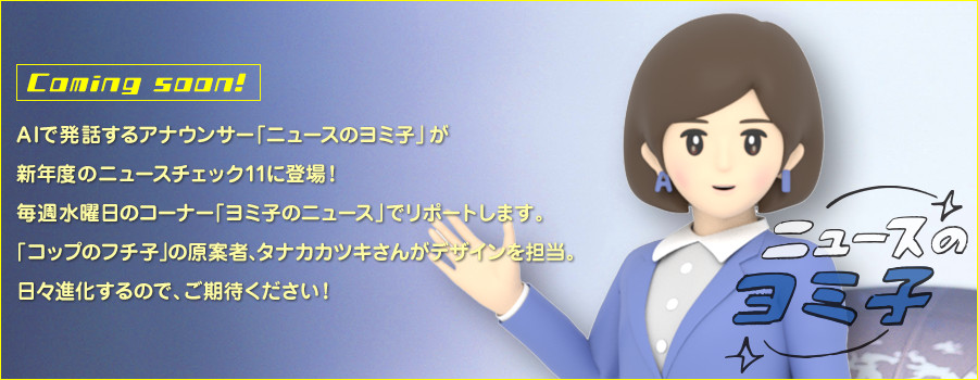 NHK電視台今日宣布,周一至周五播出的招牌新聞節目《News Check11》,從4月開始,每周三AI主播「新聞報導子」(ニュースのヨミ子)會加入一同主持,配合人工智慧語音合成技術播報新聞,向觀眾展現最尖端的科技技術。News Check11官網甚至表示「新聞報導子」會不斷進化,要觀眾拭目以待。