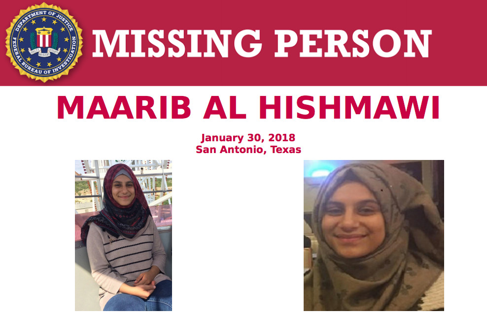 據《華盛頓郵報》報導,就讀塔夫脫中學的瑪莉朴(Maarib Al Hishmawi)在1月30日從德州比爾郡縣(Bexar)失蹤。警方介入調查後才揭露事件,比爾郡縣警長哈維爾(Javier Salazar)說,「早就看出這不是一個普通的失踪案」