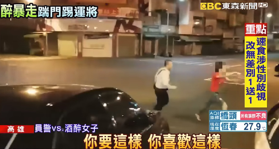 ▲高雄36歲林姓女子搭上計程車後,因酒後失控,司機為求安全直接將車開到派出所求救,到派出所後女子情緒依舊激動。(圖/東森新聞,,下同)