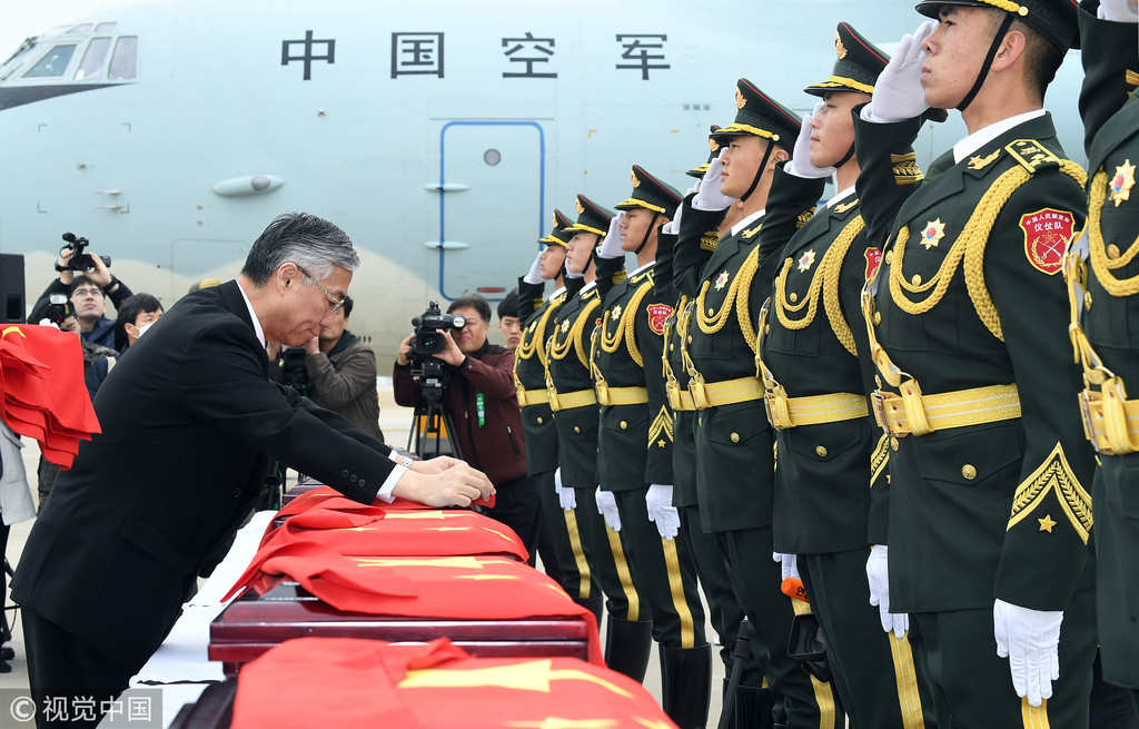 南韓軍方3月28日在仁川機場將20具韓戰中陣亡,於境內掘出的中國人民志願軍遺骸移交給中方,由解放軍空軍專機空運回國。遺骸回國後,在機場舉行了迎接儀式,接著運送至遼寧瀋陽抗美援朝烈士陵園,於3月29日上午10點舉行安葬儀式。