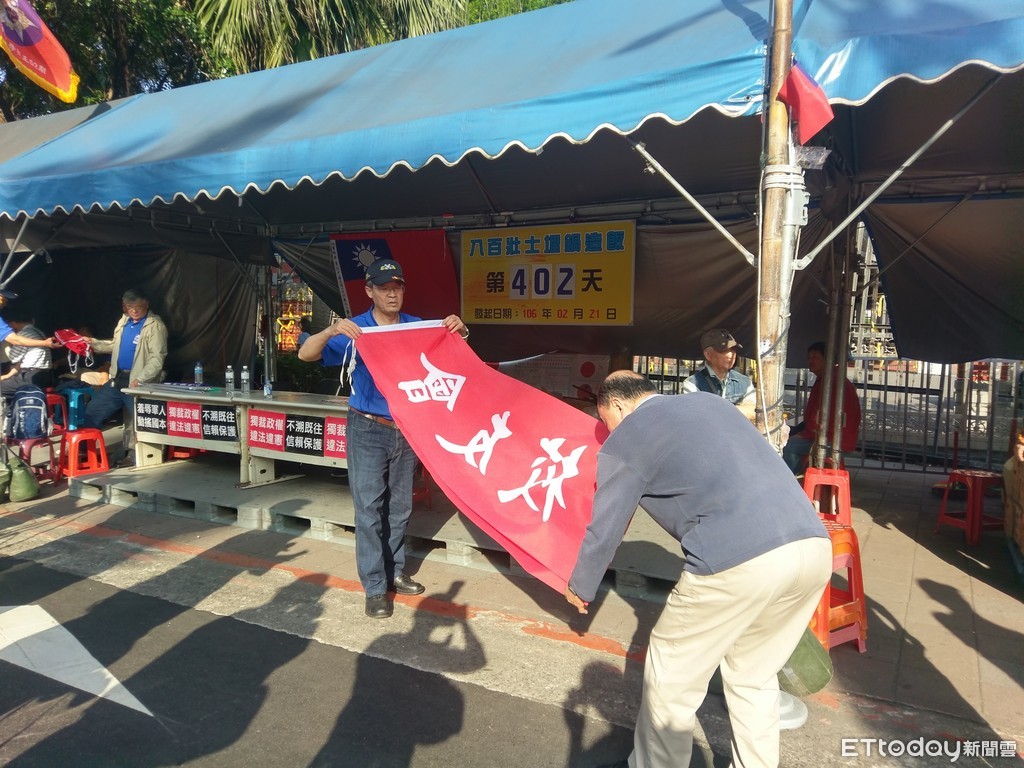 ▲八百壯士預備在1630降旗、拆帳篷。(圖/記者賴于榛攝)