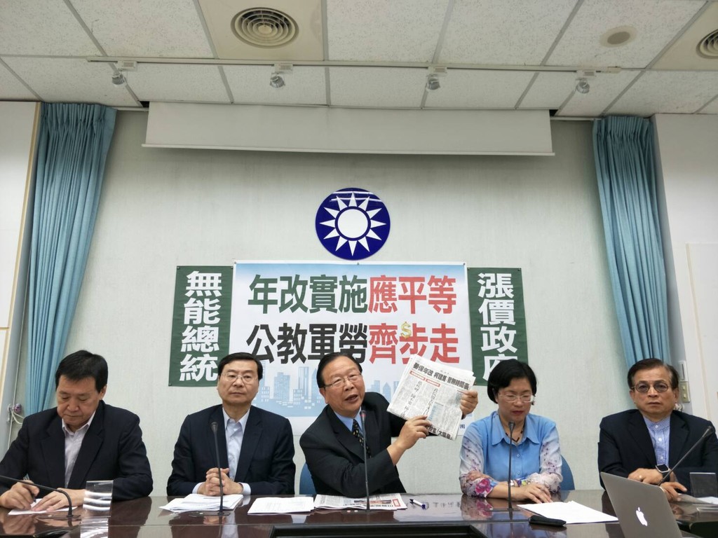 公教人員年金改革新制將於七月上路,但由於軍人、勞工的年改尚未完成修法工作,國民黨立委曾銘宗、費鴻泰、賴士葆共同提出「公務人員退休資遣撫卹法」及「公立學校教職員退休資遣撫卹條例」修正案並完成連署,盼將施行日期延後,待軍人、勞工年改法案三讀後一併實施,以符合法規範一致性及平等原則。