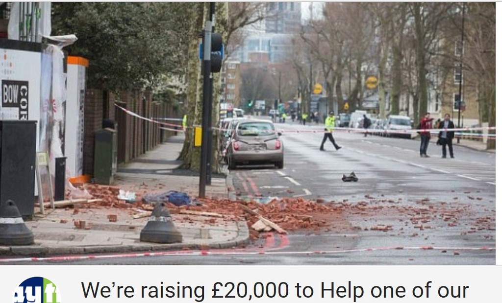 29歲的布爾(Michaela Boor)是一名單親媽媽,28日上午9時38分送兒子上學時,行經倫敦東區麥爾安德(Mile End)附近的一處工地,剛好遭到從21公尺高施工處墜下的大量磚塊擊中,當場昏厥。目擊者表示,他當時聽到附近傳來一聲巨響、和一名女子的尖叫聲,結果看到一名女子倒在路上,周圍到處是四散的磚塊和碎木,趕緊幫忙報警。