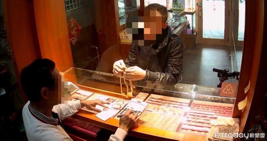 ▲搶匪假意在銀樓內挑選金飾。(圖/記者陳豐德翻攝)