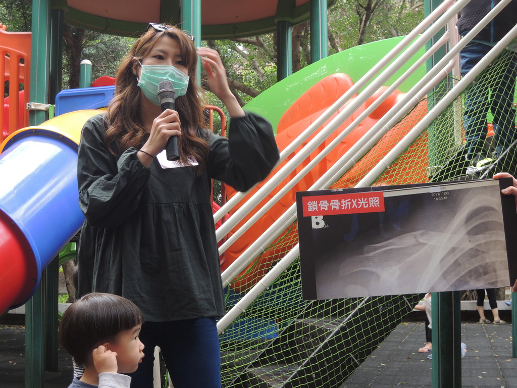3歲男童千千在士林區蘭雅公園玩溜滑梯時,卻從滑梯扶手的空隙墜落導致鎖骨骨折,千千媽媽向公園處詢問設施是否安全,卻得到「那是給6~12歲的小孩玩的」的答案;靖娟兒童安全文教基金會抽查台北各處的公園,才發現8成公園都有這樣的問題,抗議「這是排擠低年齡的孩子!」