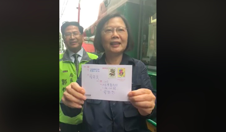 總統蔡英文30日率媒體團下花蓮,關心震災後的復興狀況,下午她更化身「直播主」,在臉書上開直播帶網友遊花蓮、全台唯一一台行動郵便車;隨後她還買了一張明信片,寄給在台北的貓「蔡想想」。