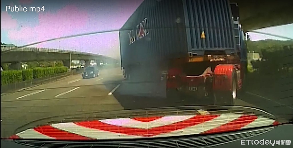 國道警31日11時許值勤巡邏,行經國一北上46.6公里蘆竹路段時,發現一部小客車故障占用外側車道,拖吊車正在進行排除作業,員警立即下車協助疏導警戒,但後方一輛聯結車疑似未注意車前狀況煞車不及,導致後方貨櫃往前擠壓,差點迎頭撞上執勤員警,所幸警方迅速往前及路肩逃開躲過一劫,驚險畫面讓人看了替員警捏把冷汗。