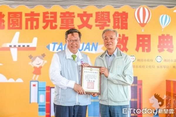 ▲「桃園市兒童文學館」開幕,首展為「說故事爺爺─傅林統(右)」。(圖/桃園市政府提供)