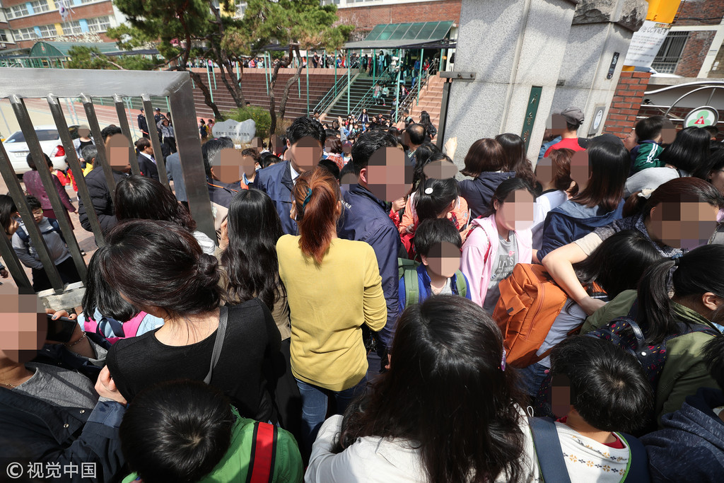 ▲南韓發生校外人士挾持4年級女童事件,家長們緊急抵達學校接孩子放學。(圖/CFP)