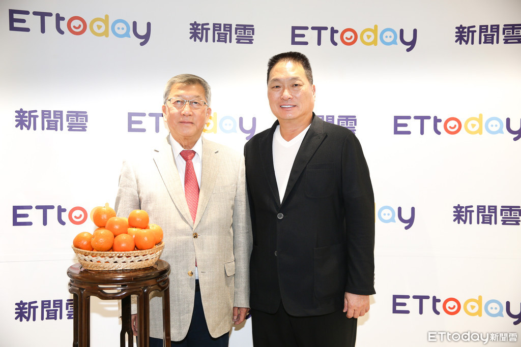 ▲新竹縣長邱鏡淳(左)親自北上拜會東森集團執行策略長王令麟(右),感謝東森購物與《ETtoday新聞雲》協助果農銷售桶柑。(圖/記者徐文彬攝)