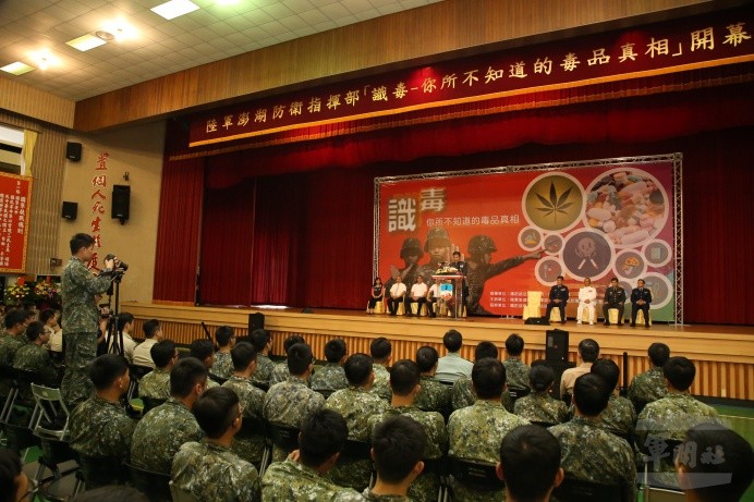 陸軍澎湖防衛指揮部3日上午與財團法人中國信託反毒教育基金會、國防部南部地區法律服務中心共同舉辦「識毒-你所不知道的毒品真相」展覽,透過展覽讓官兵瞭解毒品的危害,遠離毒品的誘惑,強化反毒意識。