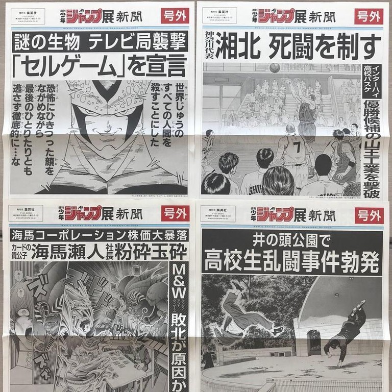 日本集英社上個月為了宣傳《週刊少年JUMP》創刊50週年的紀念作品展的宣傳活動,特別印製了報紙,包括 《 灌籃高手 》、《 七龍珠 》、《 遊戲王 》、《 鐵拳對鋼拳 》四部經典漫畫都躍上頭條, 而《 灌籃高手 》的頭條為湘北對上山王工業,櫻木花道投進的「絕殺進球」,這份當初免費發送的限量報紙,如今有人在淘寶開賣,最貴已經炒到逾2500元人民幣,相當於新台幣約11600元。