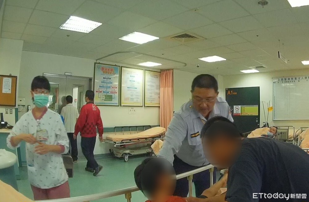 ▲警方在醫院協助安置小孩等急診醫護診治。(圖/記者林悅翻攝)