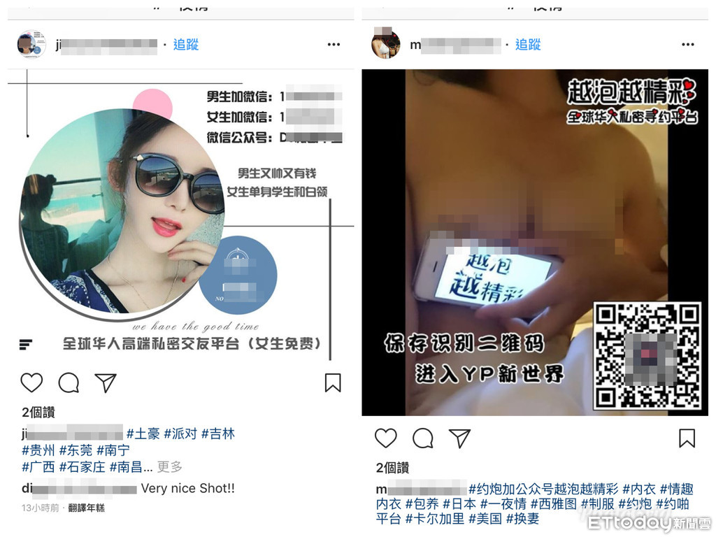 《ETtoday新聞雲》日前接獲IG用戶李小姐投訴,指出近來在IG上,常有不明男女用「文青」的大頭貼PO出約炮、一夜情的訊息,記者透過IG上提供的帳號聯繫,發現這些帳號無非是謀合男女間的包養、一夜情,但要付費給平台。