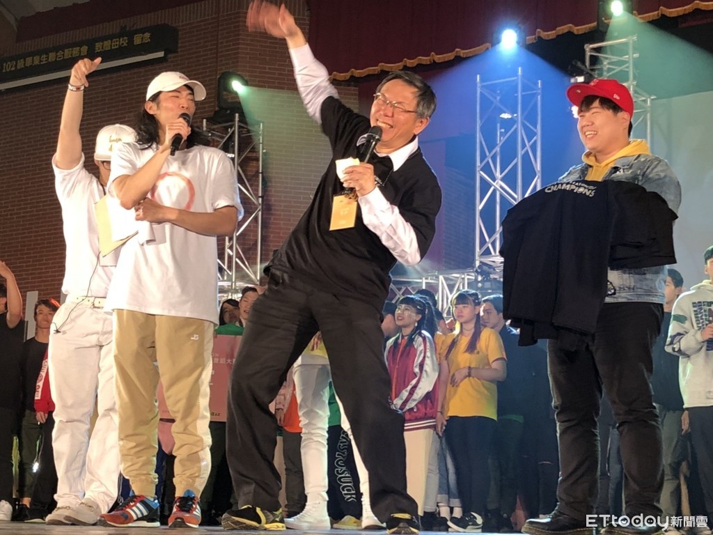 ▼台北市長柯文哲也出席了活動,在台上位參賽同學歡呼。