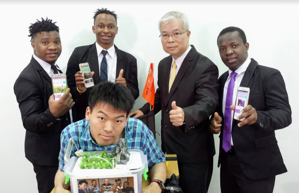 台灣代表團今年還首度有跨國合作,馬拉威阿彌陀佛關懷中心的學生喬瑟夫(Mnyanya Joseph)、薩迪克(Sadi Sadik)、羅森(Mindano Lowsan)與環球科技大學台灣學生黃健彰共組「馬拉威台灣夢想團隊」,發明「聲控農田裝置系統」,利用APP手動和語音操作控制灌水開關,協助節省水源。