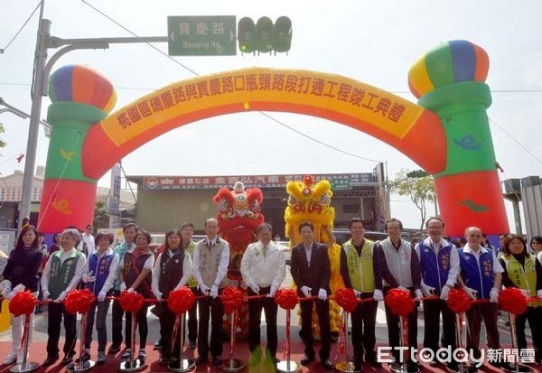 桃園區瑞慶路與寶慶路口瓶頸路段打通工程,9日舉行完工典禮。市長鄭文燦指出,該項工程總經費496萬元,其中工程費用僅96萬元,土地徵收費用約400萬元,將瑞慶路從4米拓寬至9米,抒解交通壅塞狀況,這項「小小的工程,帶來大大的方便」,是一項經費少但效益高的工程。