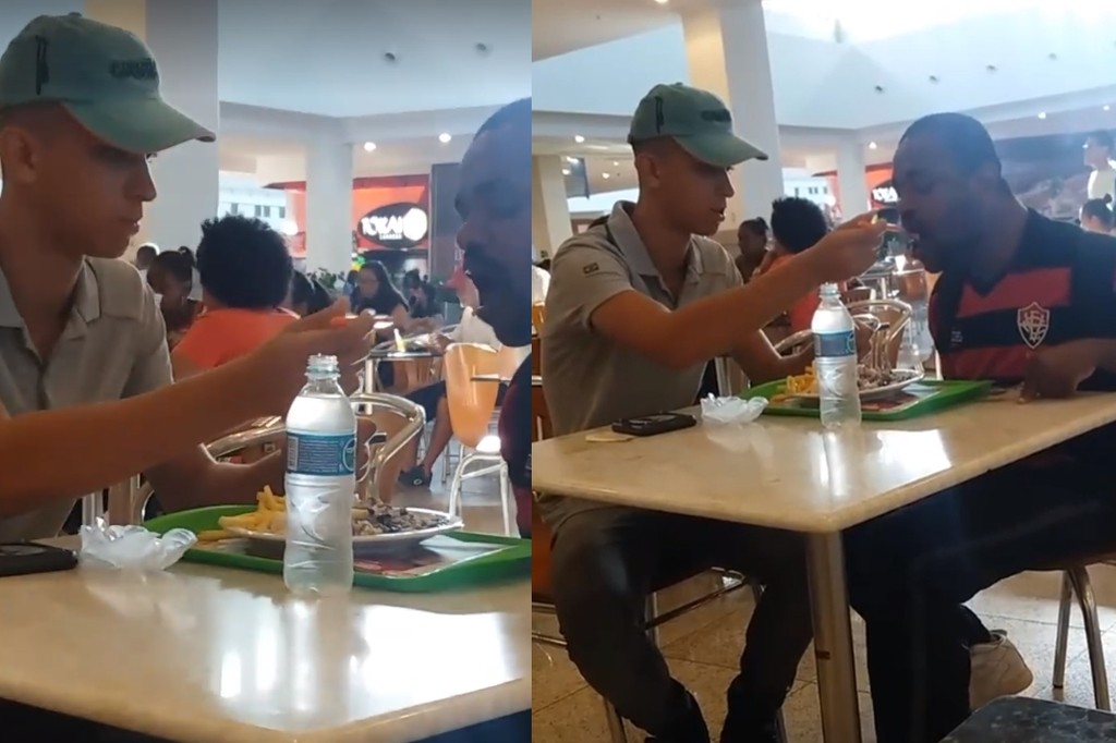 巴西一名女子日前到購物中心的美食廣場用餐,看到一個感人的畫面,原來是一間速食店店員看到殘障的顧客不方便吃東西,於是親自餵客人,一個簡單的小動作卻非常暖心。錄影的女子將影片PO到臉書之後,有超過2000萬人觀看,感動無數網友,這名年僅17歲的店員也得到速食店的嘉獎。