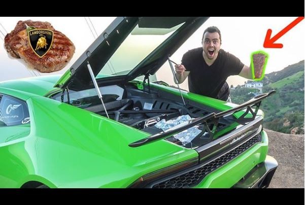 很多人喜歡吃牛排,擁有千萬超跑更是許多人的夢想,美國「人贏」Youtuber帕克(Parker)上周四在他的Vehicle Virgins頻道分享自己用價值千萬的藍寶堅尼( Lamborghini )煎牛排的影片,吸引近16萬人次觀看。