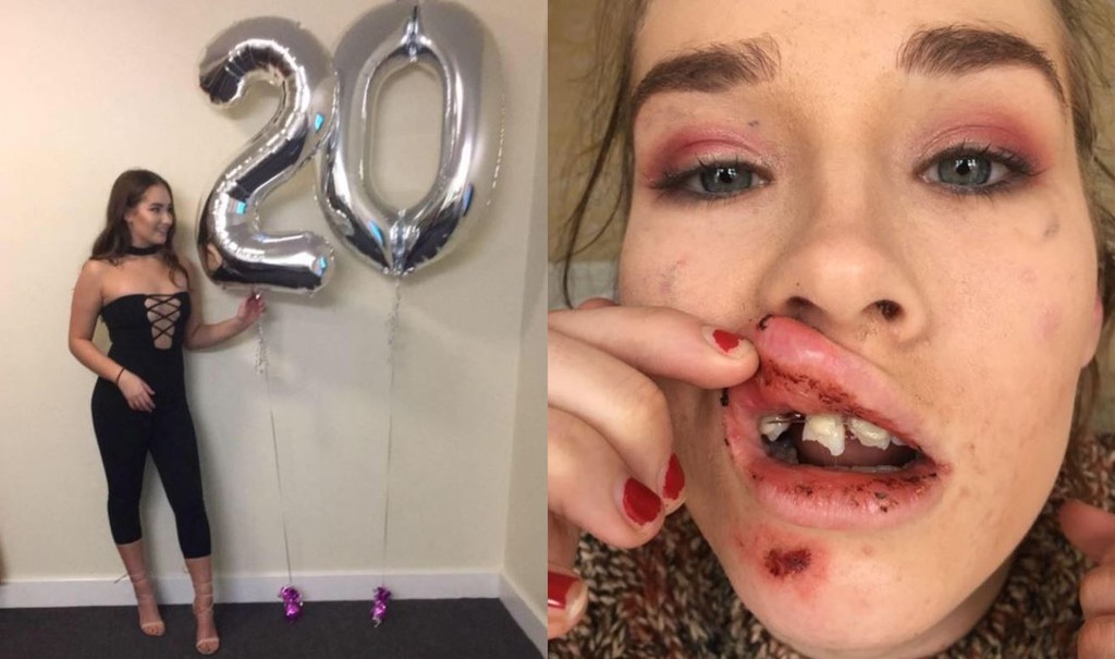 ▲詹寧斯被莫名毆打,牙齒斷掉。(圖/翻攝自臉書/Georgia Jennings)