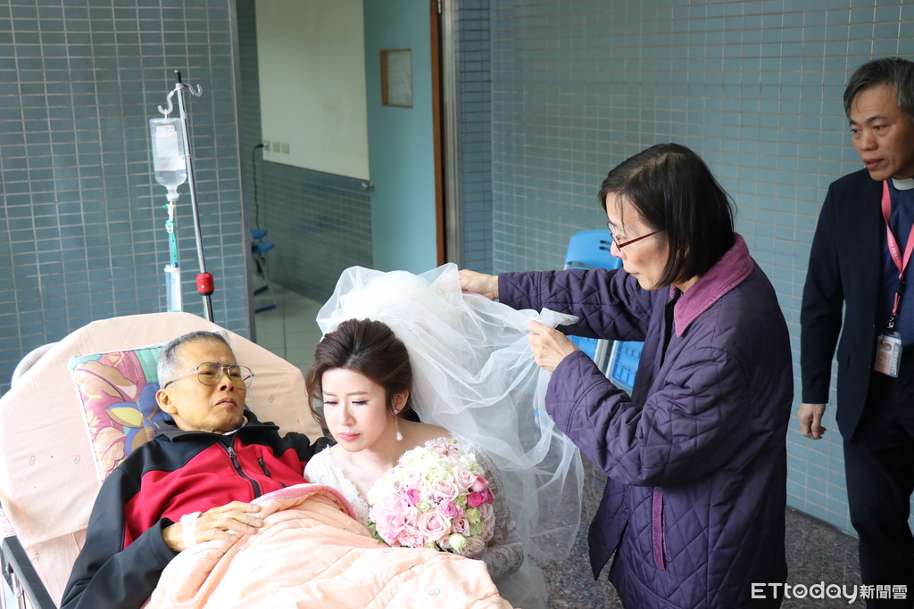 ▲父親臨時住進醫院,他躺在病床上參與女兒的喜事。(圖/讀者提供,下同)