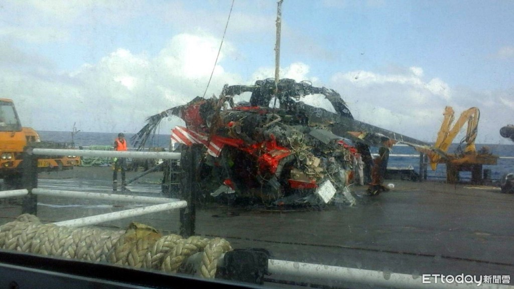 ▲黑鷹直升機殘骸打撈出水,機內有2具遺體。(圖/民眾提供)