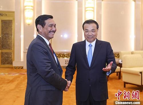 ▲中國國務院總理李克強在北京人民大會堂會建印尼總統佐科特使、海洋統籌部長盧胡特。(圖/翻攝自中新網)