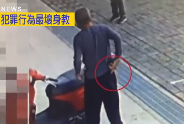 根據監視器畫面顯示,鄭男停好機車後,從腳踏墊上拿起了1把黑色的手槍,插到褲帶中後進入校園,逗留約2、3分鐘才騎車離去,嚇壞目擊的家長,過程中被門口的家長發現後報警逮人。校方表示,「正好有一個家長看到阿公車子停在那邊,腳踏墊有類似的玩具槍。」