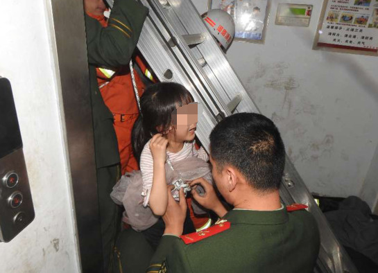 一名救援人員爬到電梯井內,用自己的肩膀支撐著女童,再將繩索捆綁在對方的腰部,其餘人員隨後用電動液壓剪擴鉗,將電梯擴張至她頭部能伸出的寬度後,再由救援人員抱著小女孩,循著繩索下降至一層電梯門才成功脫困,所幸孩子身體並無大礙。