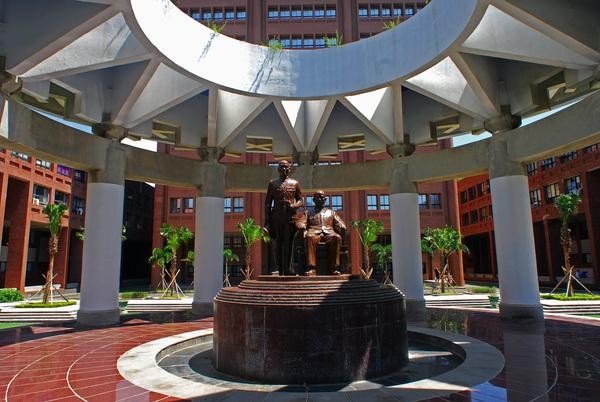 ▲中山大學圖書館前的孫中山坐像與蔣中正立像。(圖/翻攝自中山大學網站)