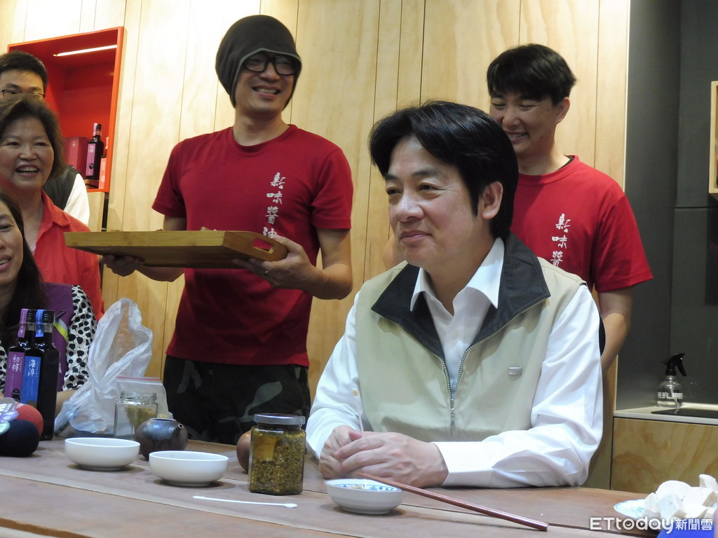 ▲行政院長賴清德參訪花蓮新味醬油食品廠。(圖/記者賴于榛攝,下同)