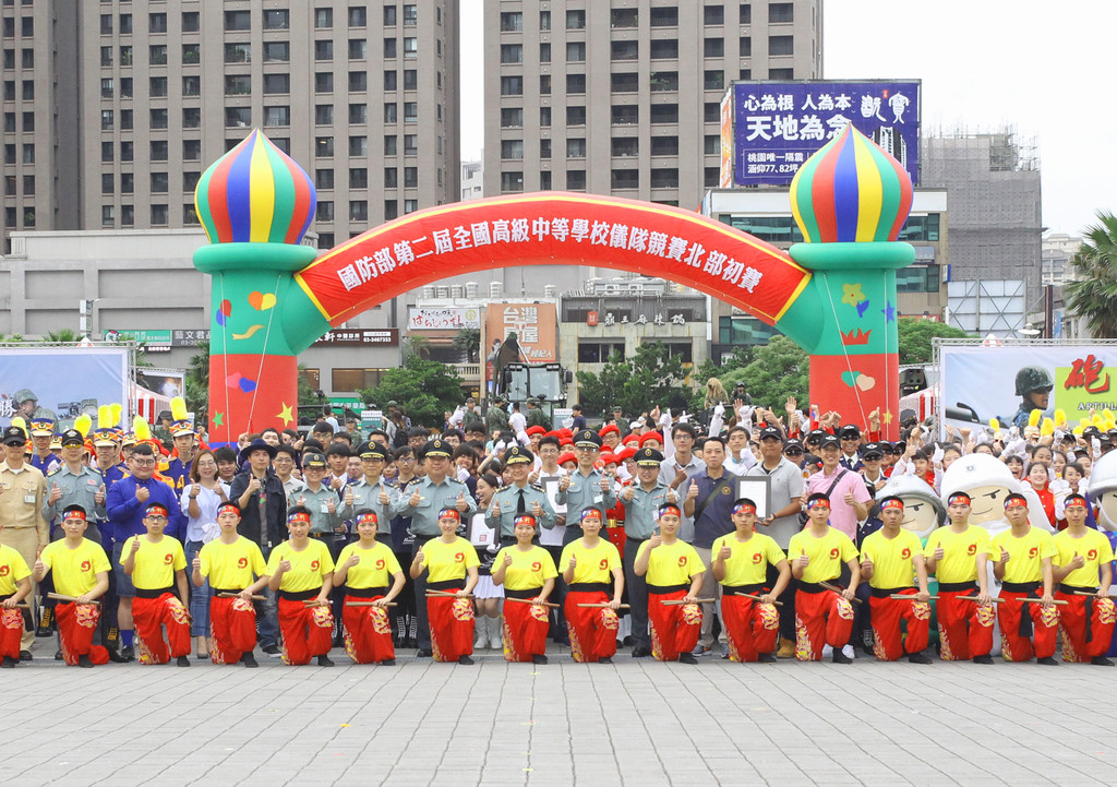 國防部第二屆全國高級中等學校儀隊競賽,北部初賽14日下午在桃園展演中心藝文園區廣場舉行,由北部13所學校角逐決賽資格,最終由台北市第一女子高中獲得第一名,第二名為桃園市新興高中,第三名則是新北市莊敬高職。而陸軍也指出,前三名隊伍將直接晉級國防部7月7日在兩廳院廣場舉行的全國決賽,而在決賽優勝學校,則可在國防部辦理的軍人節系列活動中亮相演出。