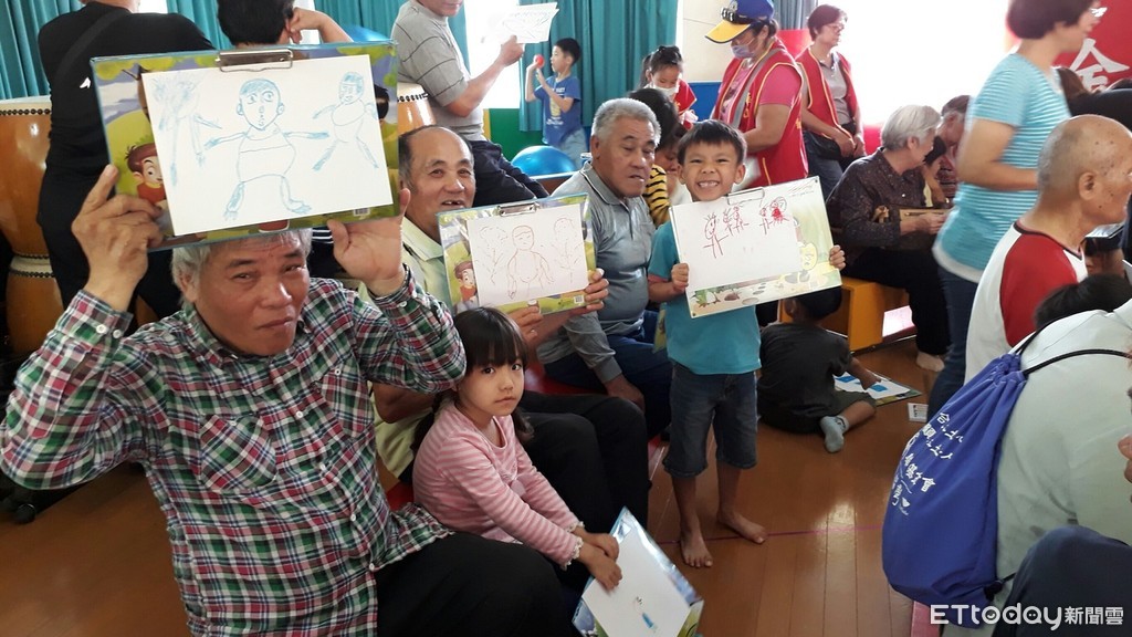 ▲青荳芽幼兒園小朋友跟長輩當同學一同做操、上課、遊戲,互畫畫像贈予對方留念,最後一起享用田心烘焙坊贊助的茶會點心,長輩表示參加活動很開心。(圖/華山基金會提供 下同)