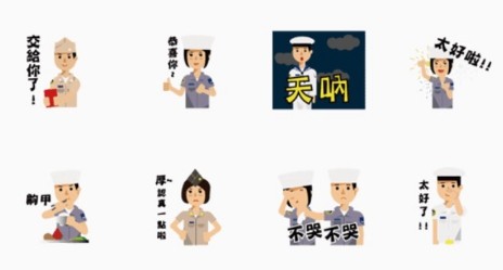 海軍司令部日前推出「動次動次!海軍健兒動起來!」首套動態貼圖,全組24款、每組60元,其中除了有流行用語「阿不就好棒」「噢~長知識了」,還有多款日常鼓勵用語如「Fighting」「交給你了」,既活潑又實用。海軍也在臉書透露,原版貼圖其實有搭配聲音,其中一款還特別由司令黃曙光配音,並將原始設計影片檔放上臉書粉絲專頁,盼讓大家感受創作者的用心。