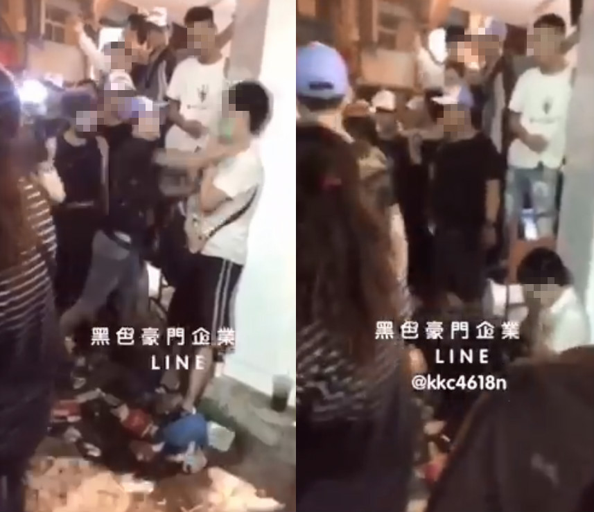畫面中顯示,白衣、黑褲男子靠在柱子上,一旁帶著鴨舌帽男子上前,直接朝白衣男臉部狠狠重擊,嘴裡還唸著「X你娘」,場面相當火爆。由於打人力道很猛烈,白衣男頭部猛烈往後撞了一下柱子,兩手遮住臉部,趕緊蹲到地上,直到影片結束都沒有站起來。