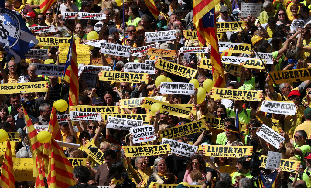 西班牙加泰隆尼亞首府巴塞隆納15日有超過30萬人上街遊行示威,抗議西班牙當局囚禁9名加泰獨派領袖,包括前加泰隆尼亞政府主席普吉德蒙(Carles Puigdemont)等,他們被指控叛國罪、正等候審判,若罪名成立,最高可能處以30年徒刑。