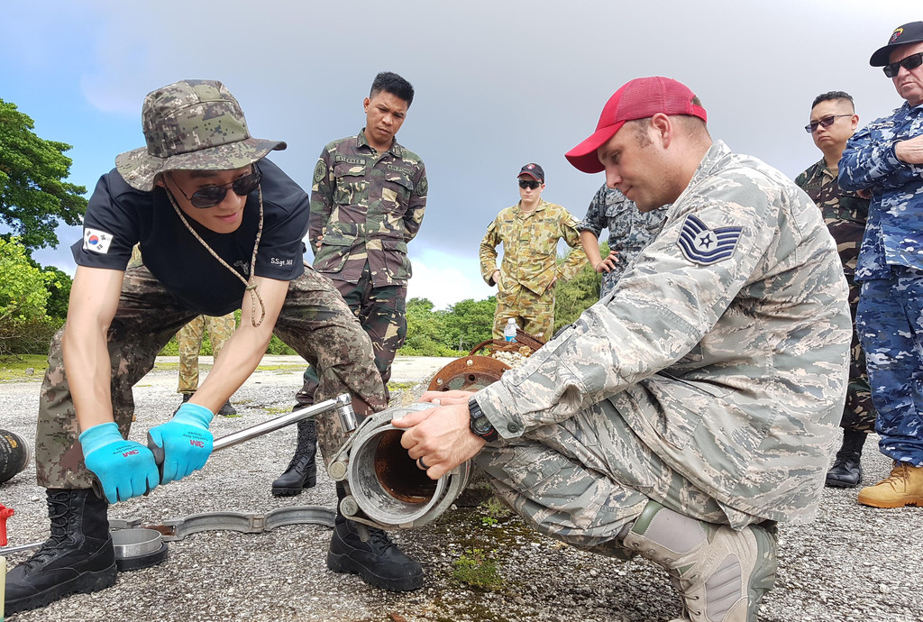 ▲2017銀旗軍演(Silver Flag),韓國空軍與各國訓練員使用美軍的油管修復裝備,進行切斷與修復毀損油管演練。(圖/達志影像/美聯社)