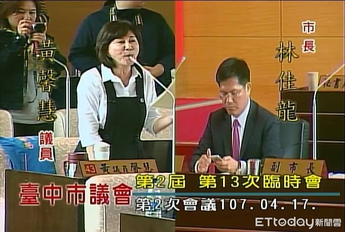 ▲國民黨議員黃馨慧質詢台中市長林佳龍。(圖/翻攝黃馨慧臉書)