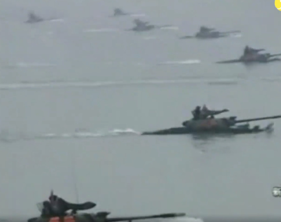 ▼從登陸艦出發的解放軍坦克部隊。(圖/翻攝字《今日海峽》臉書)