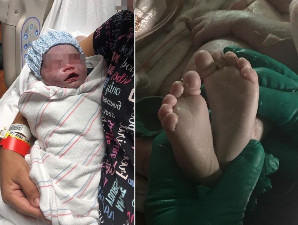 從莎妮雅 臉書照片畫面中可以看見,她抱著嬰兒看向鏡頭,雖然嘴巴咧開微笑,但眼睛已經哭到紅腫無神,透露出悲傷的神情。懷中的孩子頭戴粉紅色的毛帽,緊閉雙眼毫無血色的,眼睛還浮出一層淡淡的紫青色,沒有健康嬰兒該有的樣貌。